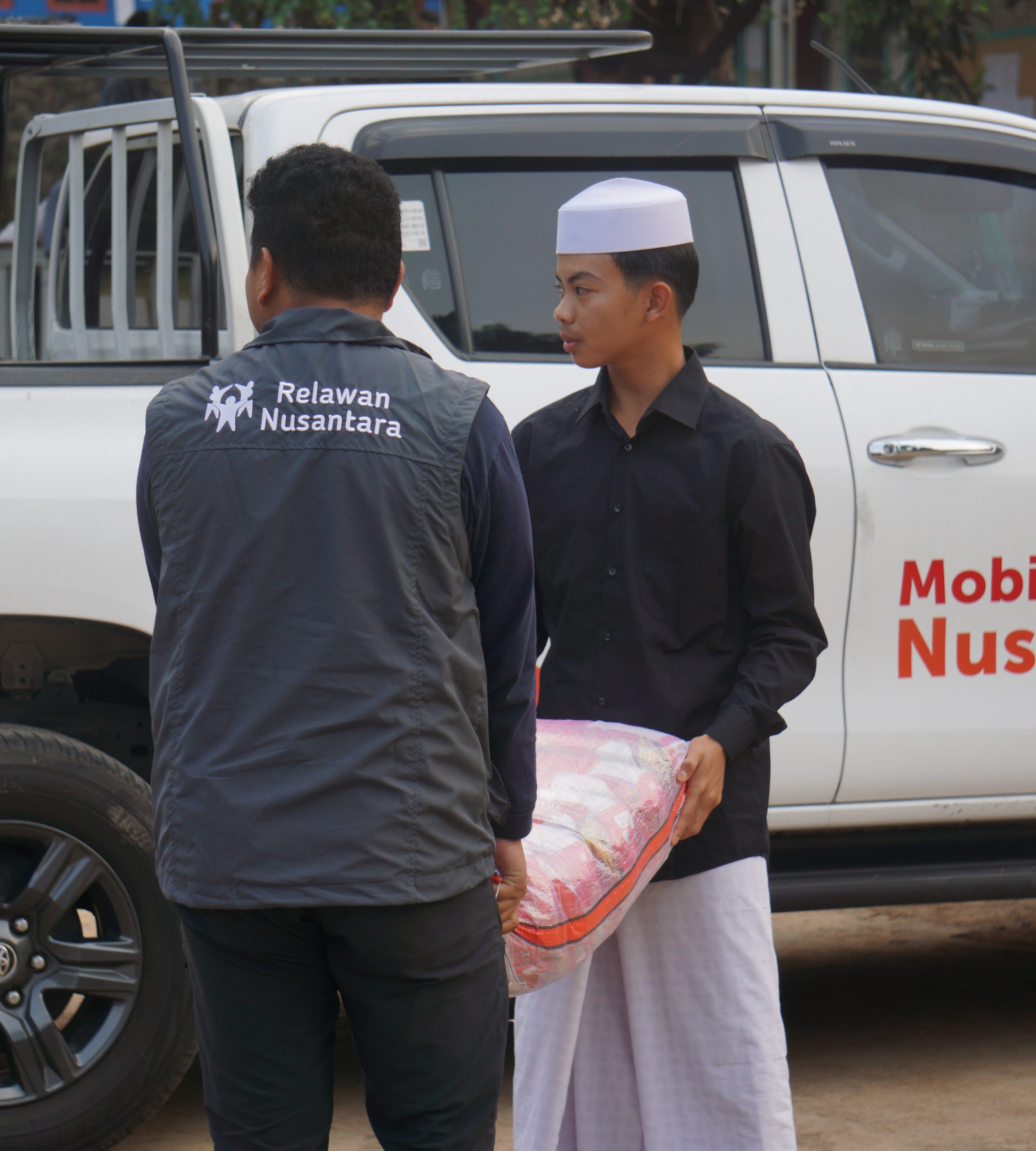 Relawan Nusantara menyalurkan puluhan karung beras untuk para santri yang menimba ilmu di pesantren yang terletak di Desa Gunungmanik tersebut. Bantuan itu disambut hangat oleh 194 santri dan 45 pengurus pondok yang setiap harinya mengurus kegiatan belajar dan kehidupan mereka.