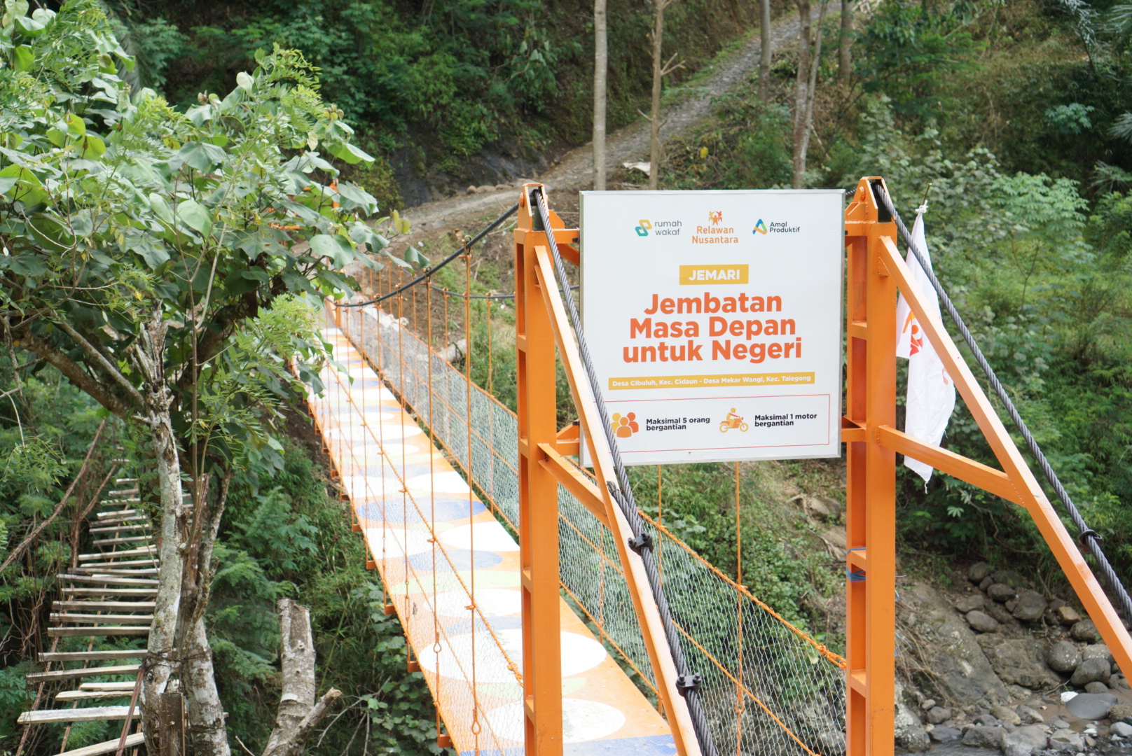Relawan Nusantara bersama Amal Produktif dan Rumah Wakaf Indonesia meresmikan Jembatan Sarongge, menghubungkan Desa Cibuluh, Cianjur, dengan Desa Mekarwangi, Garut. Jembatan gantung ini menjadi bagian…