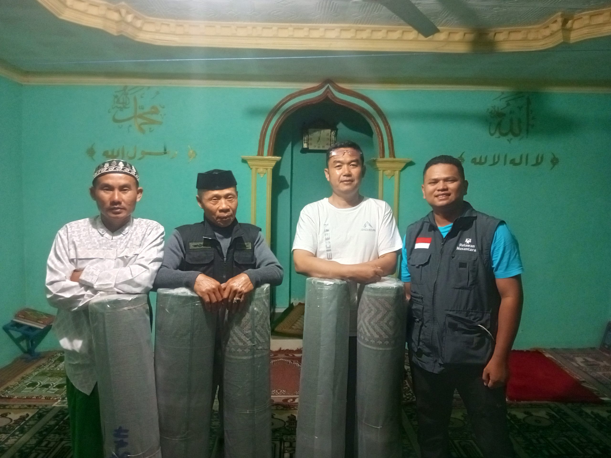 Relawan Nusantara bersama Baznas Jabar menyalurkan karpet masjid di Kampung Pangauban, Garut. Hadirkan kenyamanan ibadah dan semangat baru bagi warga