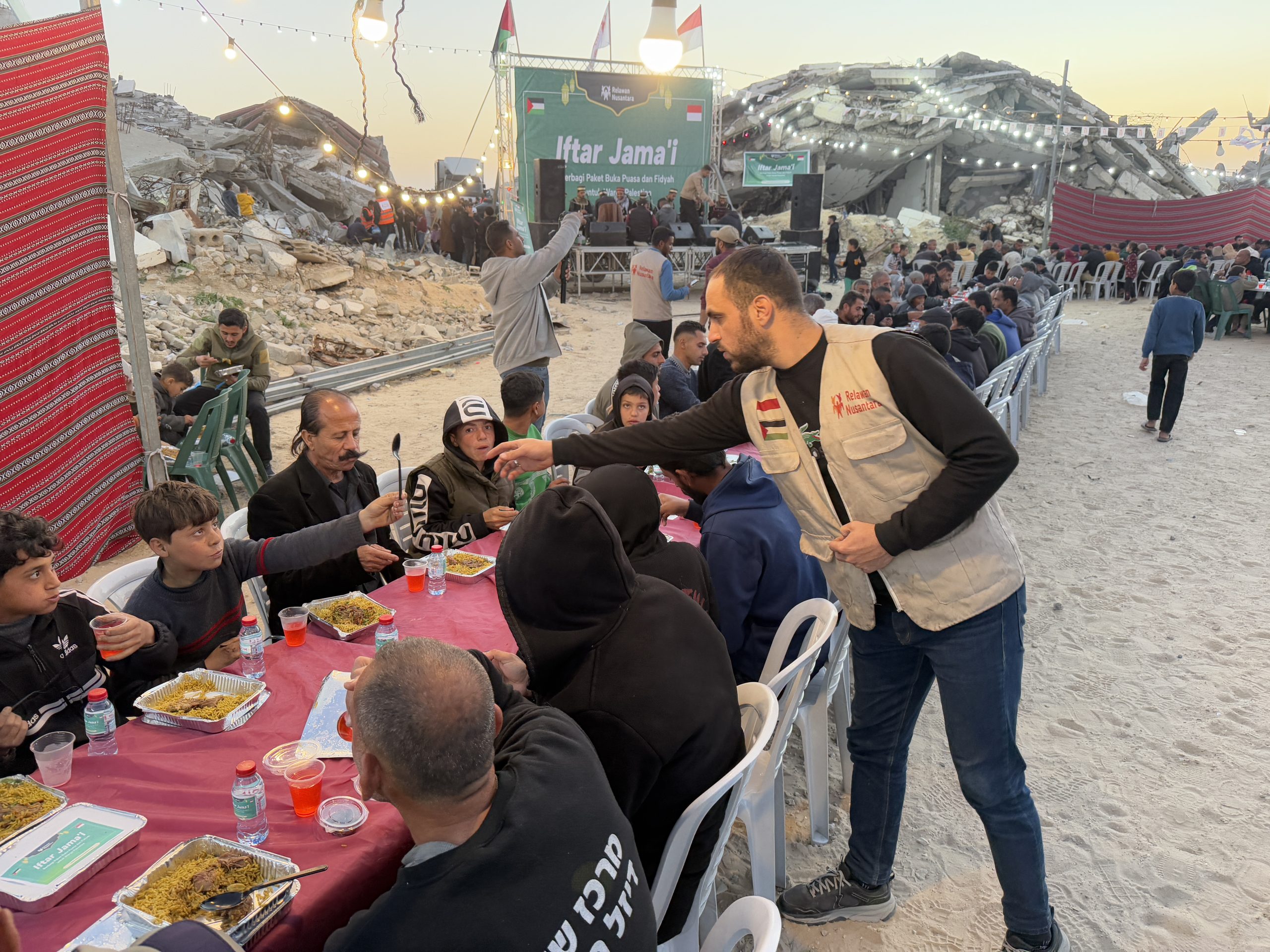 Di antara puing-puing bangunan dan jalanan yang tak lagi utuh di Sheikh Ajleen, harapan kembali dihidangkan dalam bentuk yang sederhana namun bermakna, makanan berbuka puasa. Di wilayah Gaza Utara, sebanyak 1.500 paket iftar jama’i berhasil didistribusikan kepada warga yang menjalani Ramadan dalam kondisi serba terbatas.