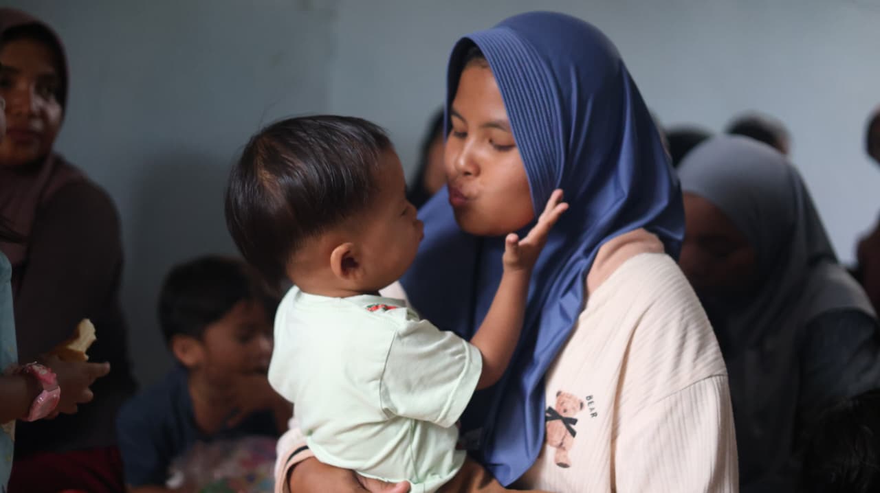 Dukungan itu diperkuat dengan pemenuhan kebutuhan dasar. Puluhan paket baby kit dan paket makanan tambahan disalurkan langsung kepada balita dan anak-anak terdampak. Dalam kondisi pascabencana, menjaga kesehatan dan asupan gizi anak adalah fondasi penting agar pemulihan berjalan beriringan antara fisik dan psikologis.