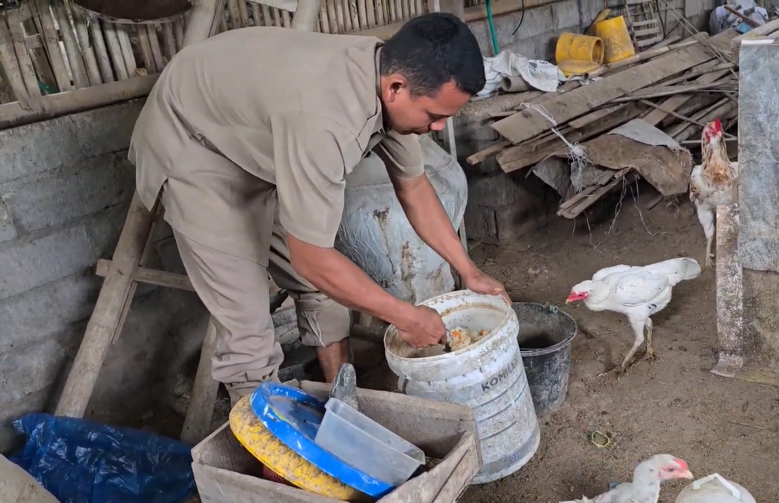 Di samping rumahnya, ia memelihara 10 ekor ayam. Setiap sore, selepas mengajar, ia memberi makan ayam-ayam itu dengan sabar, merawatnya dengan sabar, sama seperti ia merawat harapan di dalam hatinya.