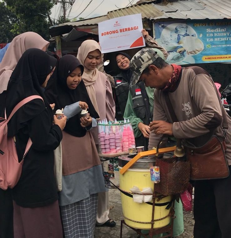 Jum’at 26 April 2024— Relawan Nusantara memborong habis dan membagikan eskrim yang dijual keliling oleh seorang bapak paruh baya di Panyileukan, Bandung.